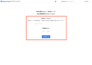 - 取引先コードと郵便番号を入力し、「利用開始する」をクリックします。