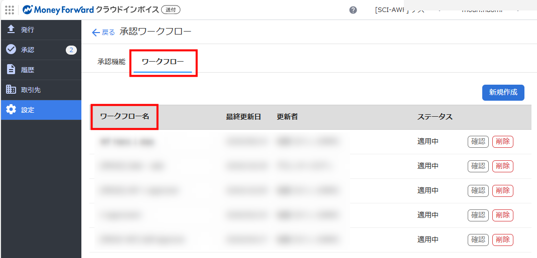 設定>承認ワークフロー
