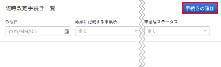 - 「随時改定手続き一覧」画面右上の「手続きの追加」をクリックします。