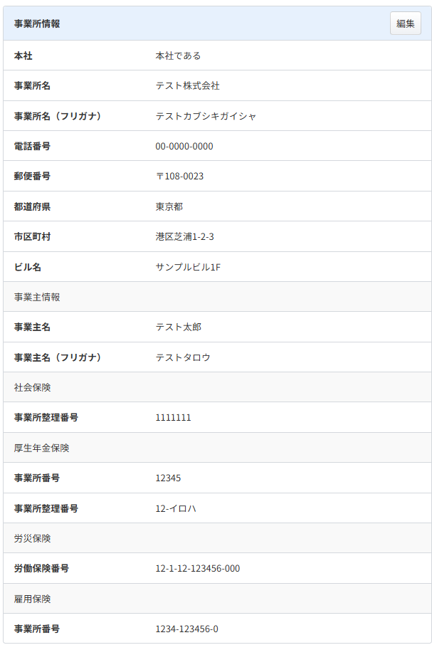 情報の編集は「事業所」画面で行ってください。