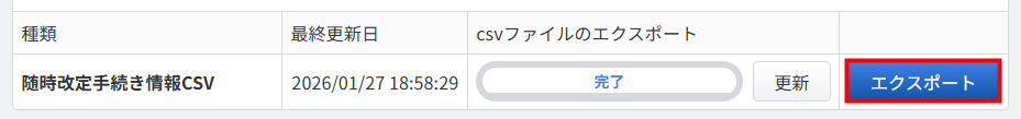 - 「随時改定手続きのインポート/エクスポート」画面の「エクスポート」で「出力フォーマット」を選択し、「更新」をクリックします。