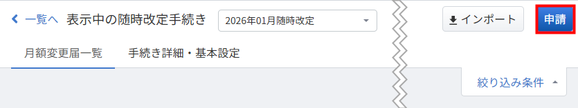 随時改定手続きの編集が終了したら、画面右上の「申請」をクリックします。