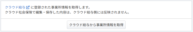 「クラウド給与から事業所情報を取得」をクリックすると、クラウド給与の「事業所」の情報が取得できます。