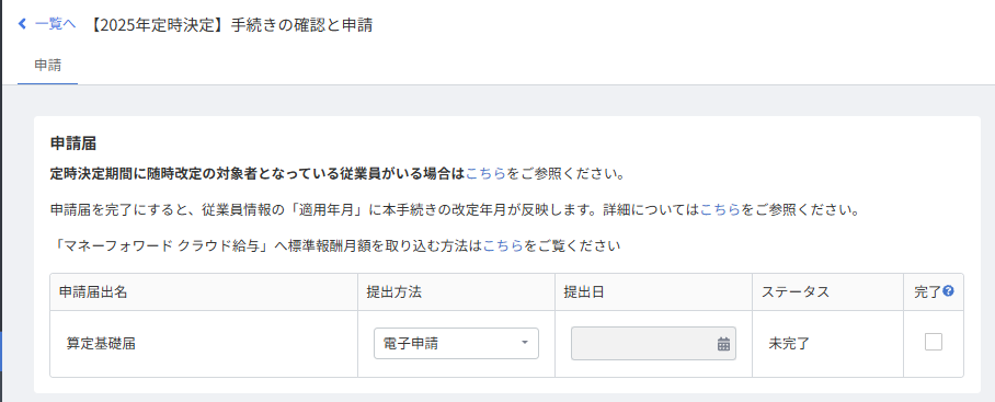 クラウド給与と連携せずに利用する場合は、給与計算の確定を行わずに定時決定の手続きを行うことができます。