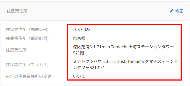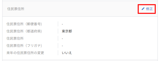 以下の手順では、住民票住所を修正する場合を例に説明します。