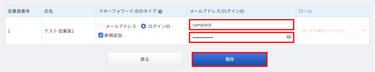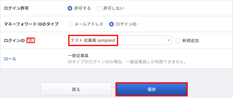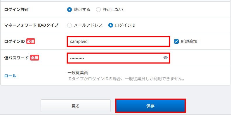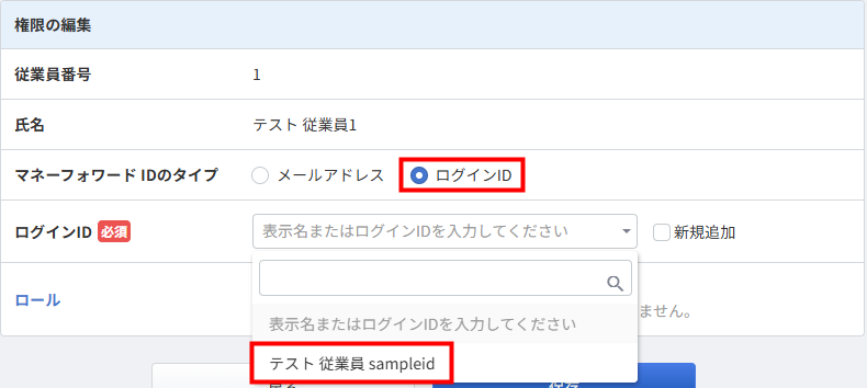 - 「ログインID」を設定できるのは、ロールが「一般従業員」の従業員のみです。