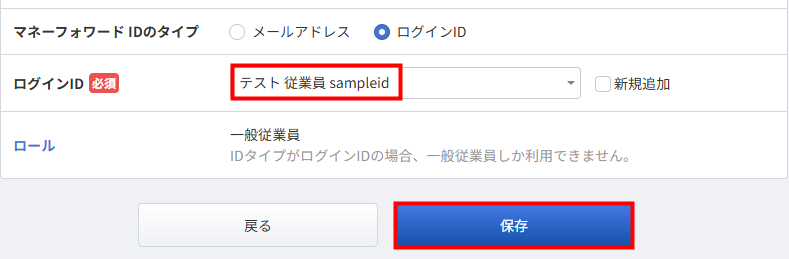 - 選択したログインIDを確認し、「保存」をクリックします。
