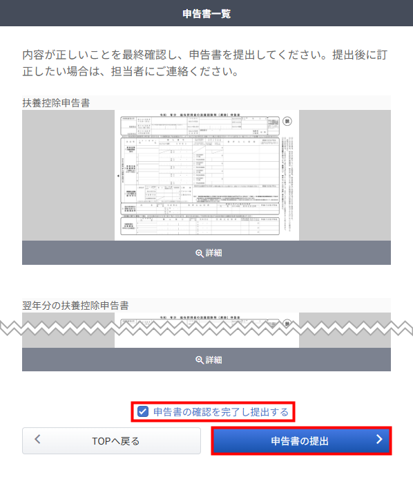 申告情報の確認が完了したら、年末調整に必要な申告書を提出します。