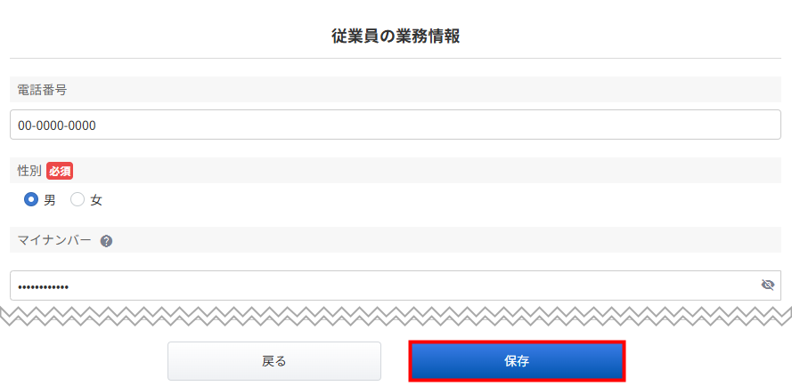 以下の手順では、従業員のマイナンバーを手入力する場合を例に説明します。