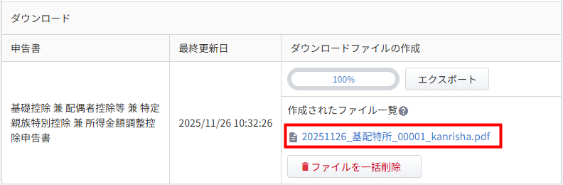 - 作成されたPDFをクリックし、申告書をダウンロードします。