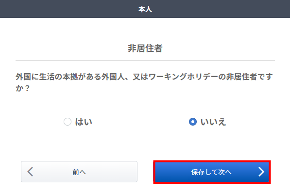 「はい」または「いいえ」を選択し、「保存して次へ」をクリックしてください。