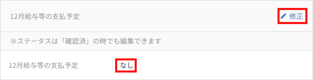 12月1日以降に給与・賞与の支給予定がない場合は「12月給与等の支払予定」の「修正」より「なし」に変更することで、税制改正前のルールに基づいて年末調整の計算を行います。
