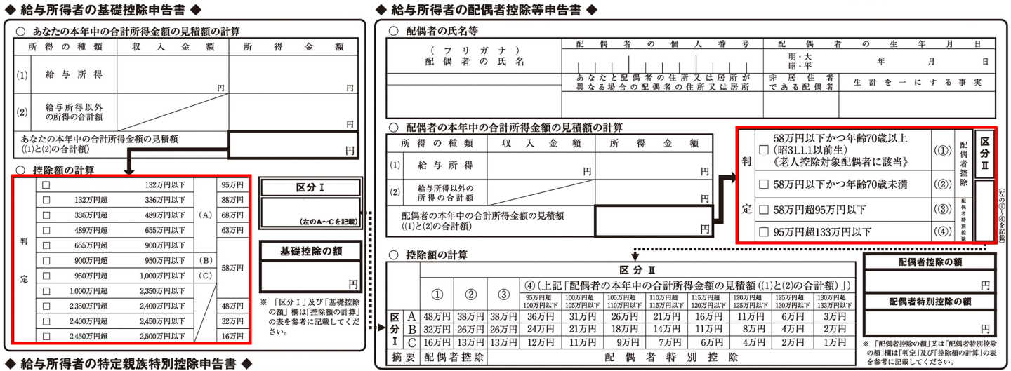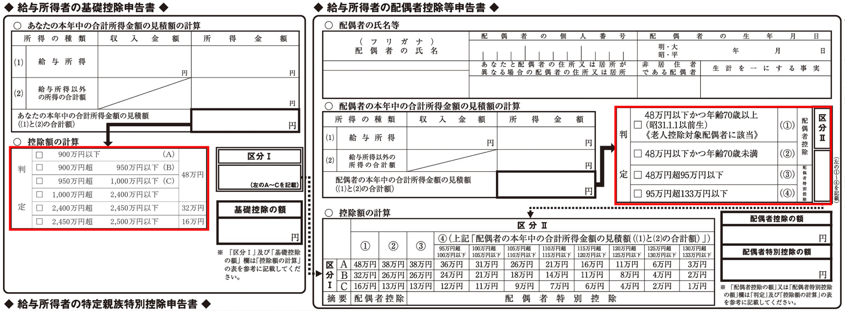 出典:国税庁,「令和7年分給与所得者の基礎控除申告書兼給与所得者の配偶者控除等申告書兼給与所得者の特定親族特別控除申告書兼所得金額調整控除申告書」を加工して作成(以下同じ)(2025年11月14日)