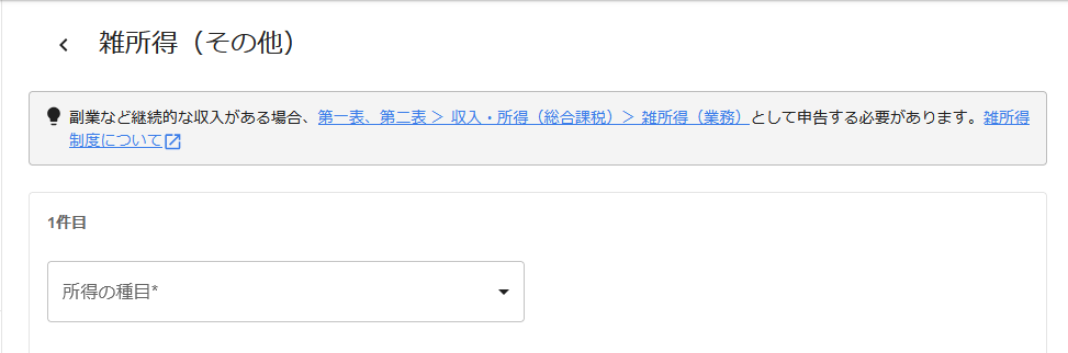 - 一時所得・雑所得・譲渡所得がある場合の入力