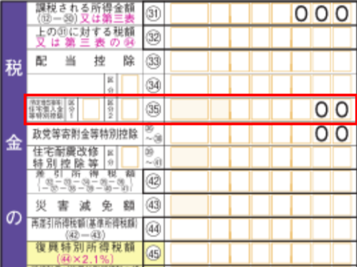 | 確定申告書第一表 (35)(特定増改築等)住宅借入金等特別控除 | ![]() |