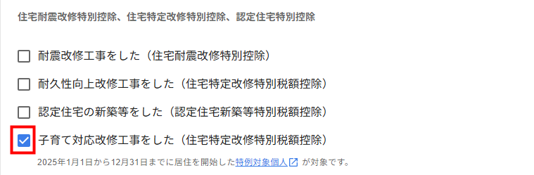 2024年に入居し、2025年にはじめて(特定増改築等)住宅借入金等特別控除の適用を受け、以下の条件に合致する場合、記載の対応が必要となります。