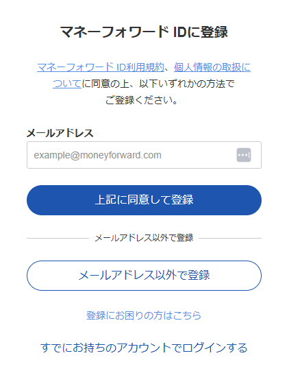 - 「マネーフォワード ID」画面でアカウントの新規登録を行います。