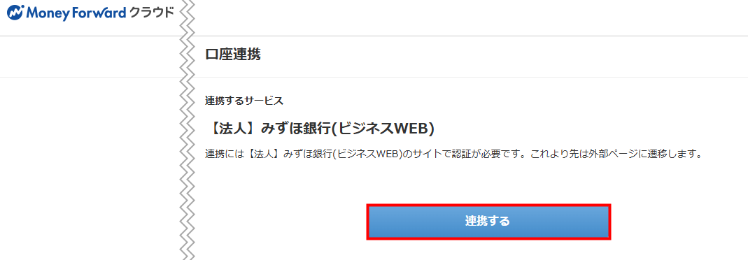 選択後表示されるボタンを押すと、金融機関のページに移動します。必要事項を入力し連携をおこなってください。