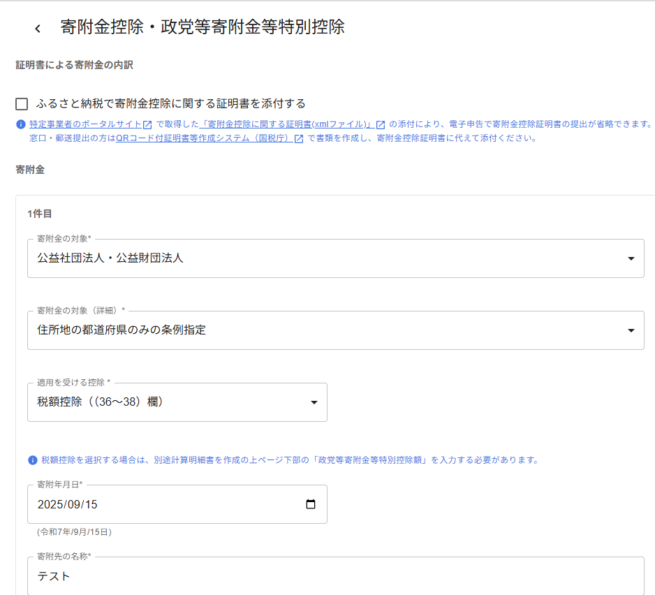 ふるさと納税を行った際の寄附金控除の入力方法については、以下のガイドをご参照ください。
