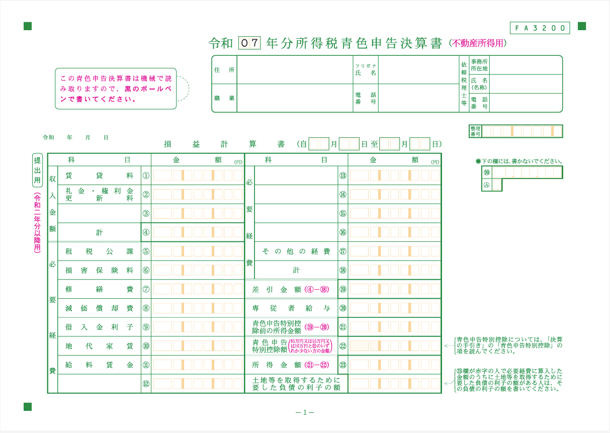 青色申告決算書(不動産所得用)