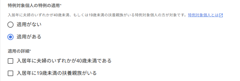 「新型コロナウイルスの影響による入居遅延」は、新型コロナウイルスの影響によって入居が期限に遅れた場合など、要件に該当する場合にチェックを入れます。