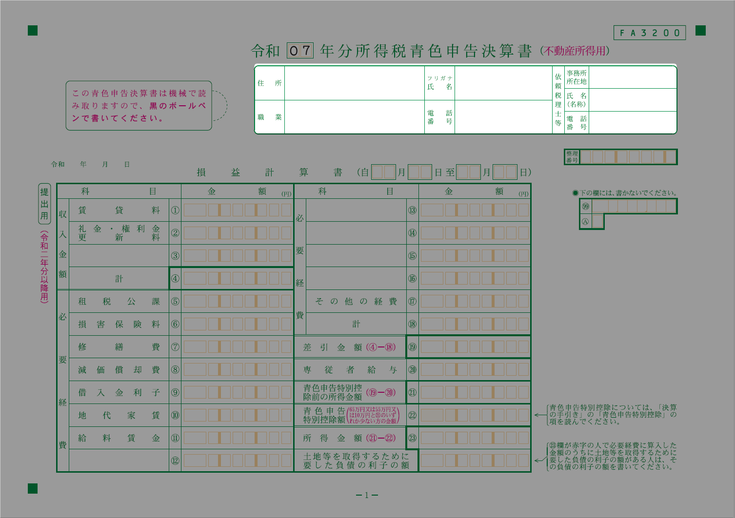 出典:国税庁,「所得税青色申告決算書(不動産所得用)【令和7年分用】」を加工して作成(以下同じ)(2025年12月25日)