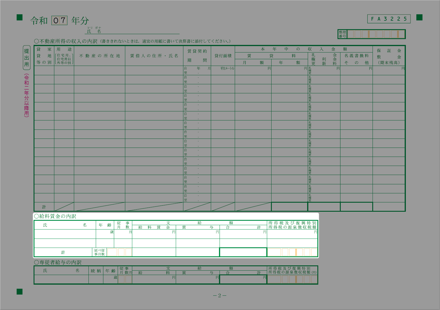 「専従者給与の内訳」には、「不動産について」>「専従者給与の内訳」画面で登録した専従者へ支払った給与金額等が反映します。