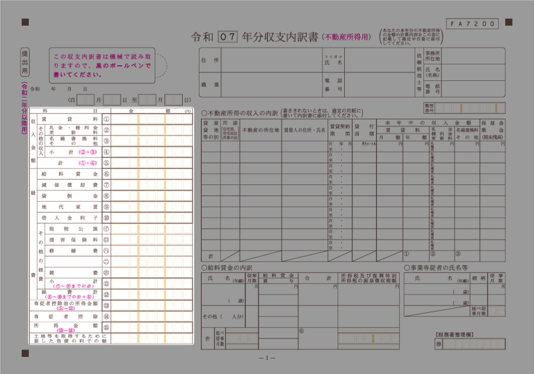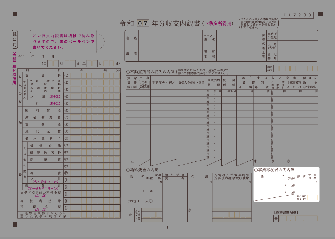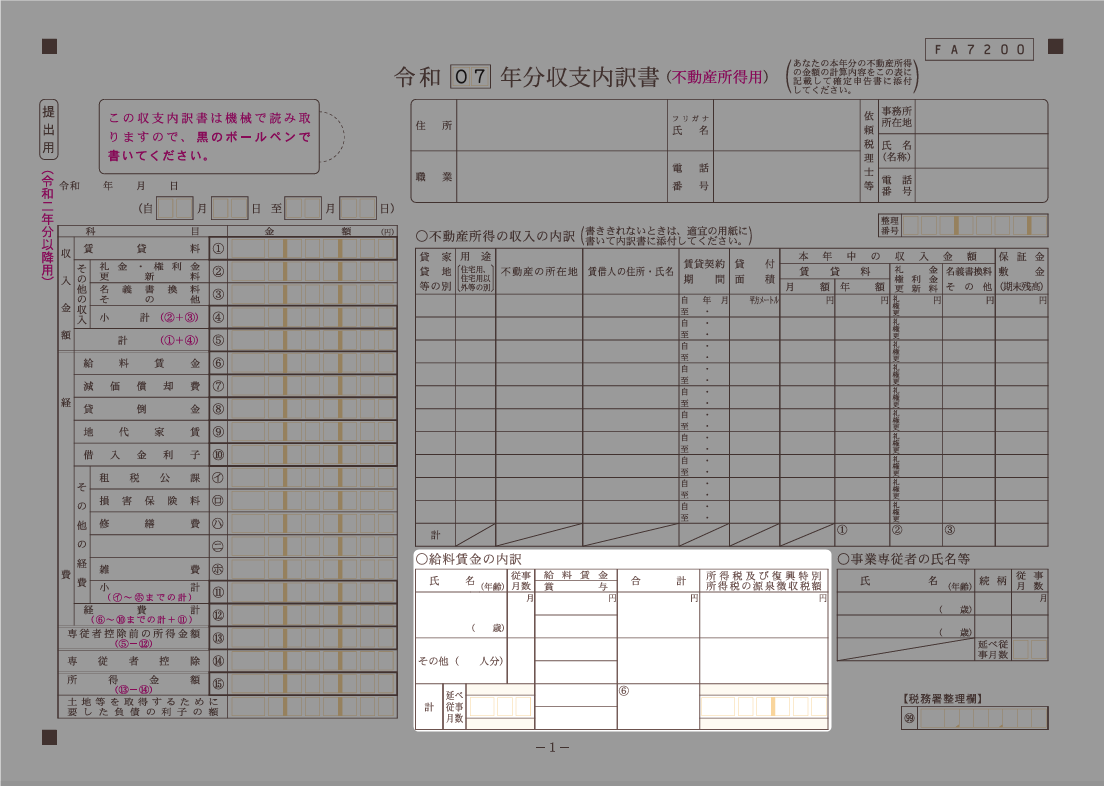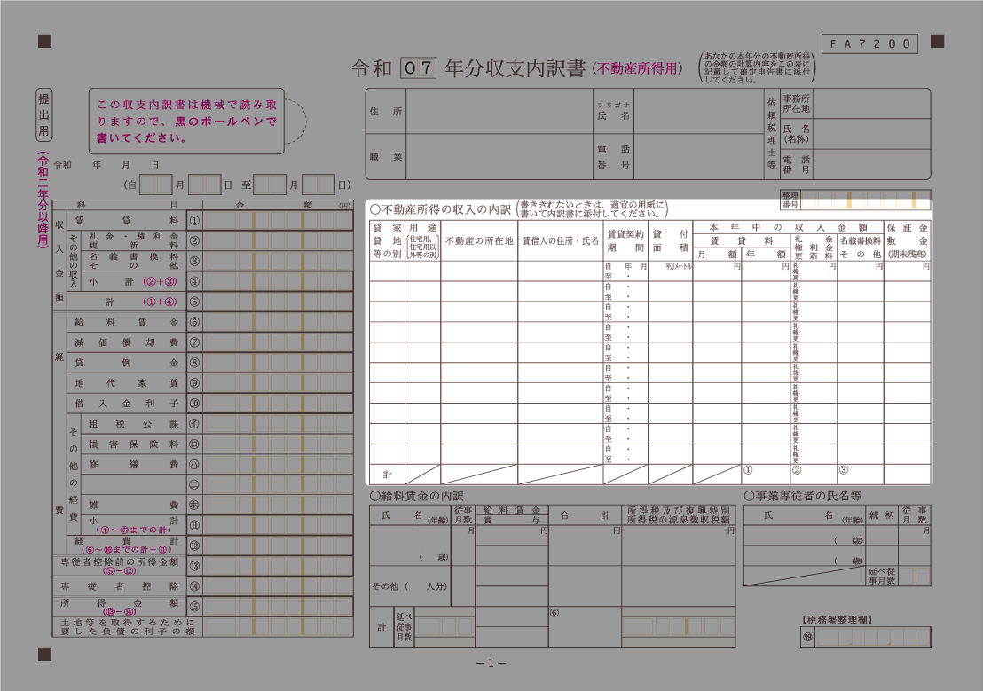出典:国税庁,「収支内訳書(不動産所得用)【令和7年分用】」を加工して作成(以下同じ)(2025年12月25日)
