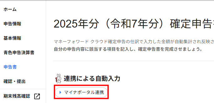 申告書>マイナポータル連携