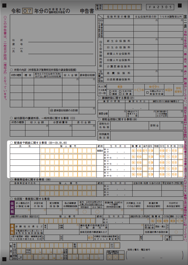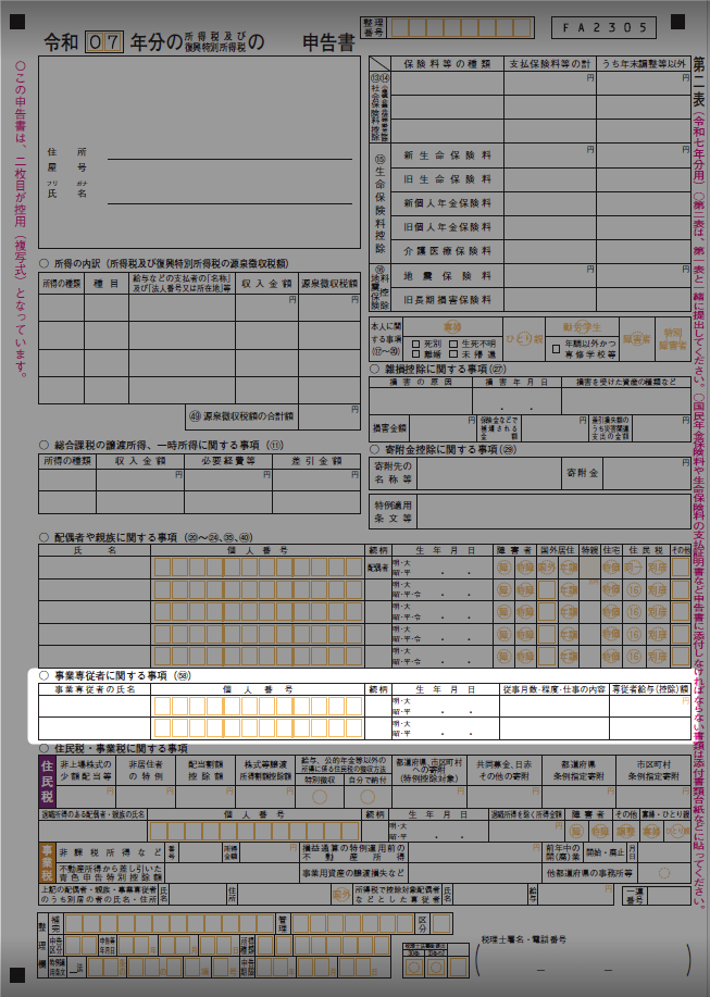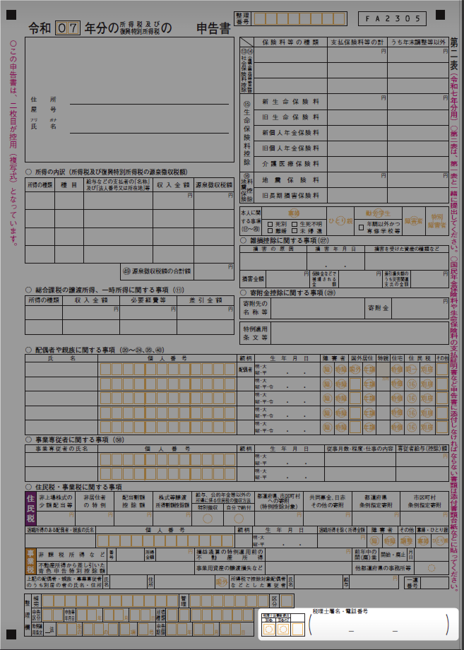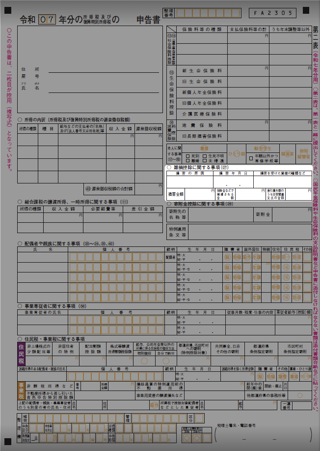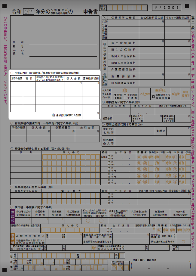 2024年分(令和6年分)確定申告書第二表から入力箇所を探す
