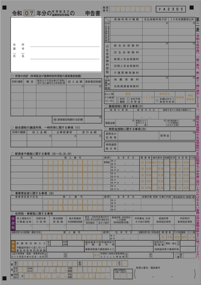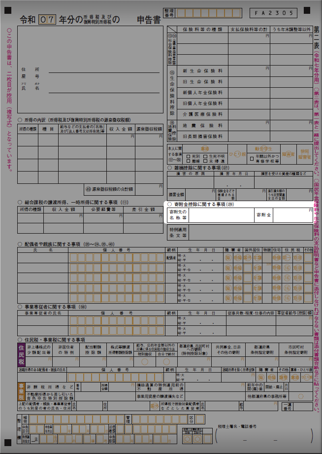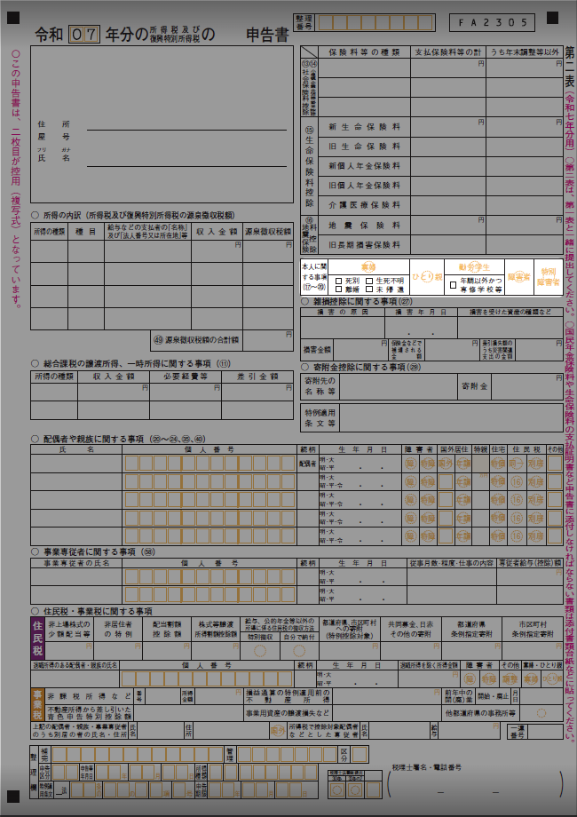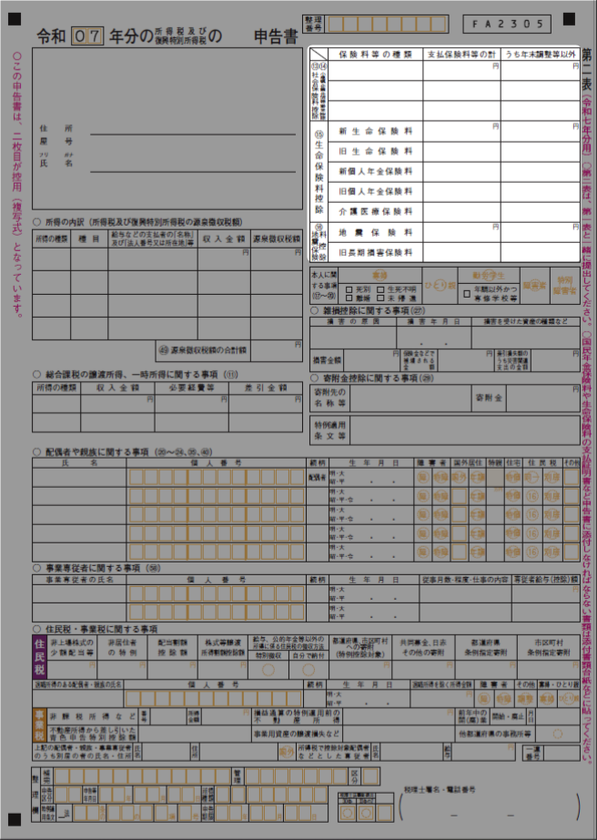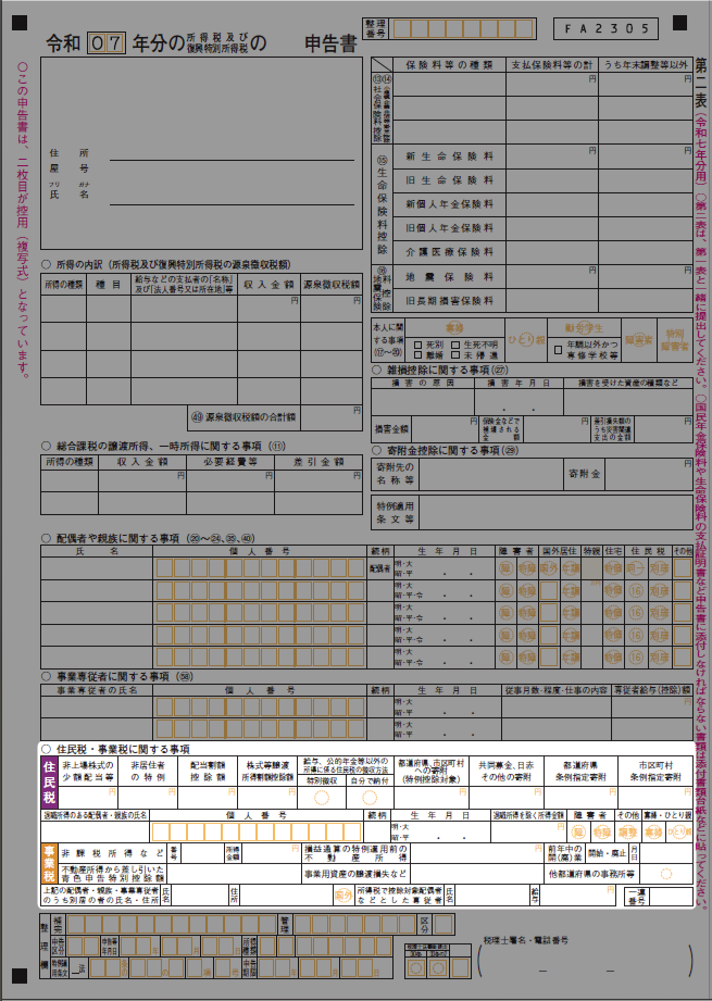 出典:国税庁,「申告書第一表・第二表【令和7年分用】」を加工して作成(以下同じ)(2025年12月17日)