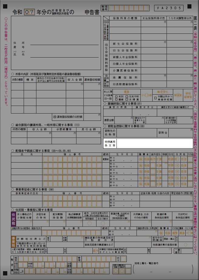 確定申告書等の様式・手引き等(令和7年分の所得税及び復興特別所得税の確定申告分)|国税庁