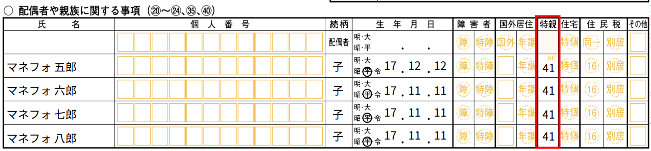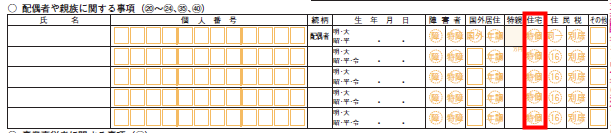 - 配偶者や親族に関する事項(20)~(24)、(35)、(40)