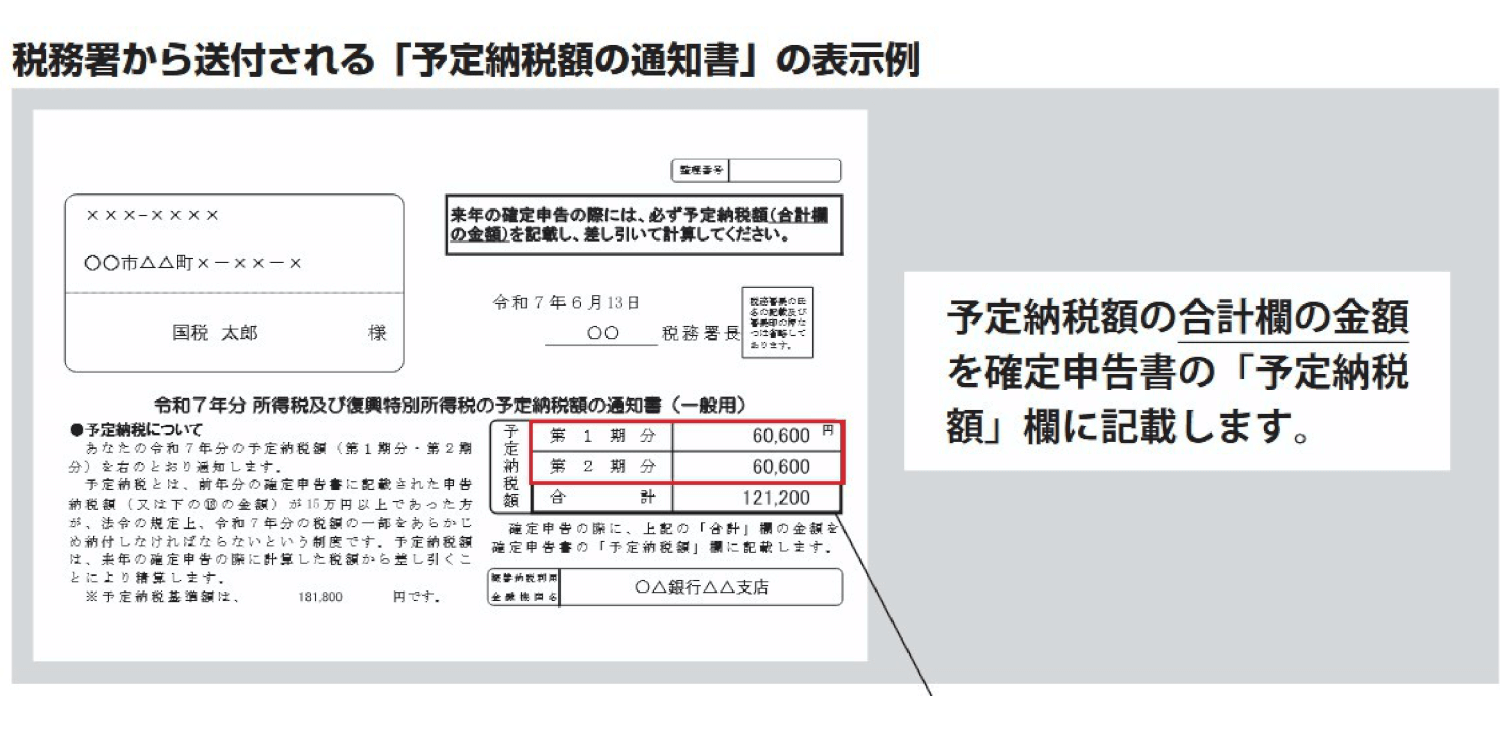 予定納税額はどこを見ればわかる?