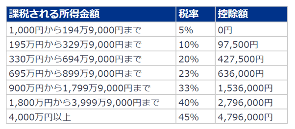 出典:No.2260 所得税の税率|国税庁、「所得税の速算表」を加工して作成