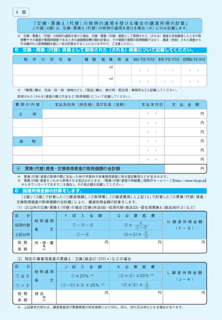 - 買換(代替)資産を取得見込の場合には、買換え資産の明細書